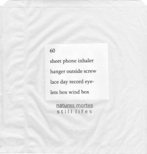 A book work on a paperbag by Seekers of lice. Number 60: sheet phone inhaler hanger outside screw lace day record eye- lets box wind box.