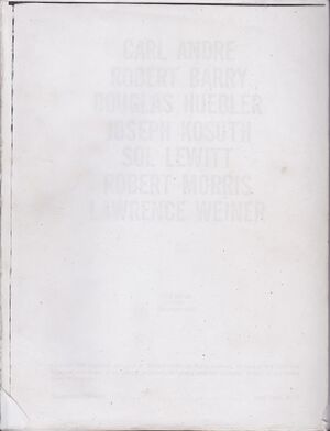 - Carl Andre, Robert Barry, Douglas Huebler, Joseph Kosuth, Sol LeWitt, Robert Morris, Lawrence Weiner